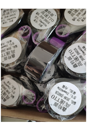 產(chǎn)品介紹:熱轉(zhuǎn)印條碼碳帶就是在一面涂上蠟基、樹脂基或混合的 油墨的聚脂或其它高密度薄膜。 熱轉(zhuǎn)印打印就是用熱和壓力將油墨從碳帶介質(zhì)轉(zhuǎn)印到紙或薄膜的過程,當標簽通過打印機的打印頭和 時,將油墨轉(zhuǎn)印到標簽上